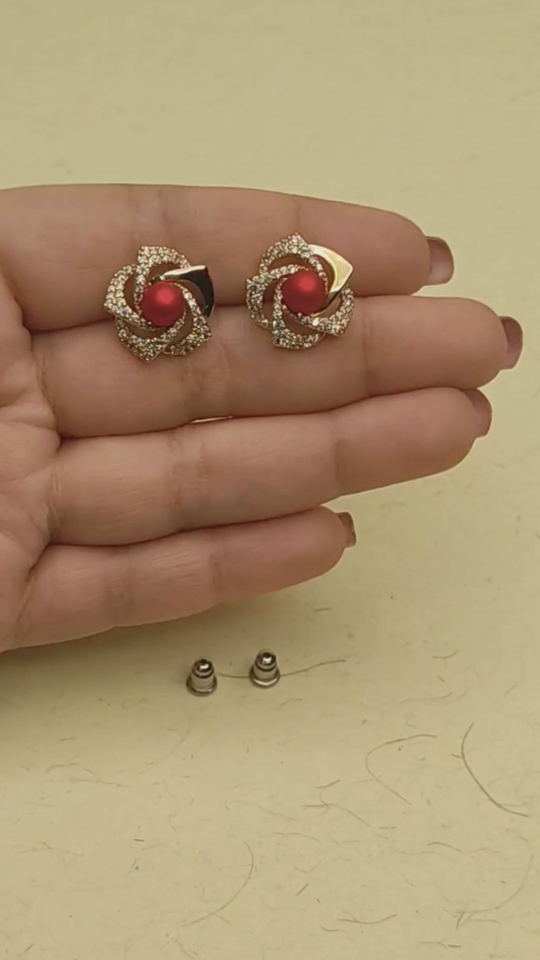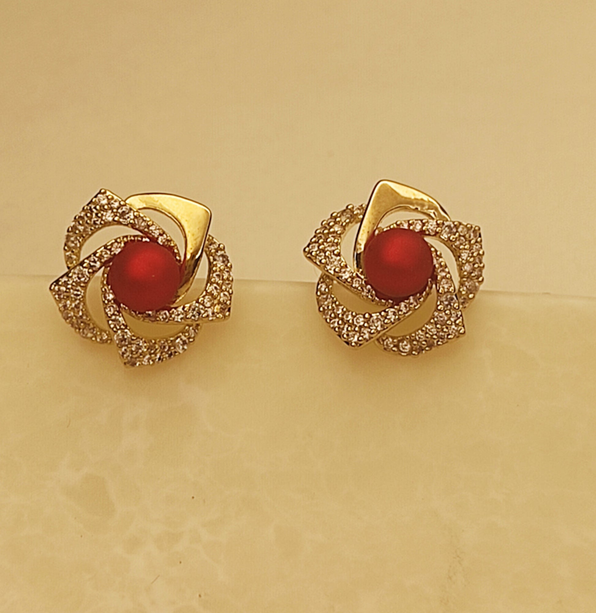 Product Name: Gold and Red Flower Studs