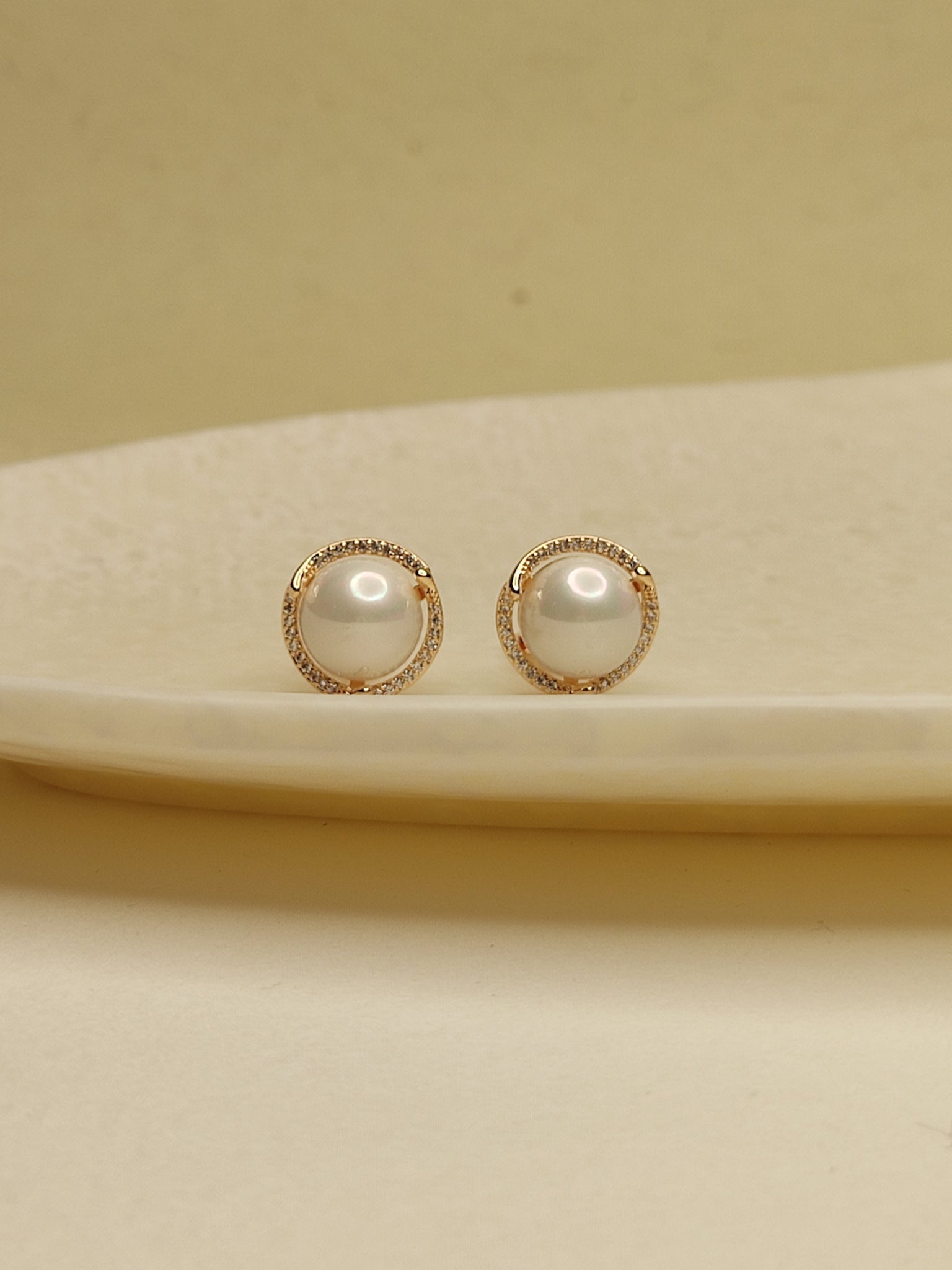 Material: Alloy with gold plating, single pearl & Cubic Zirconia (American Diamond)