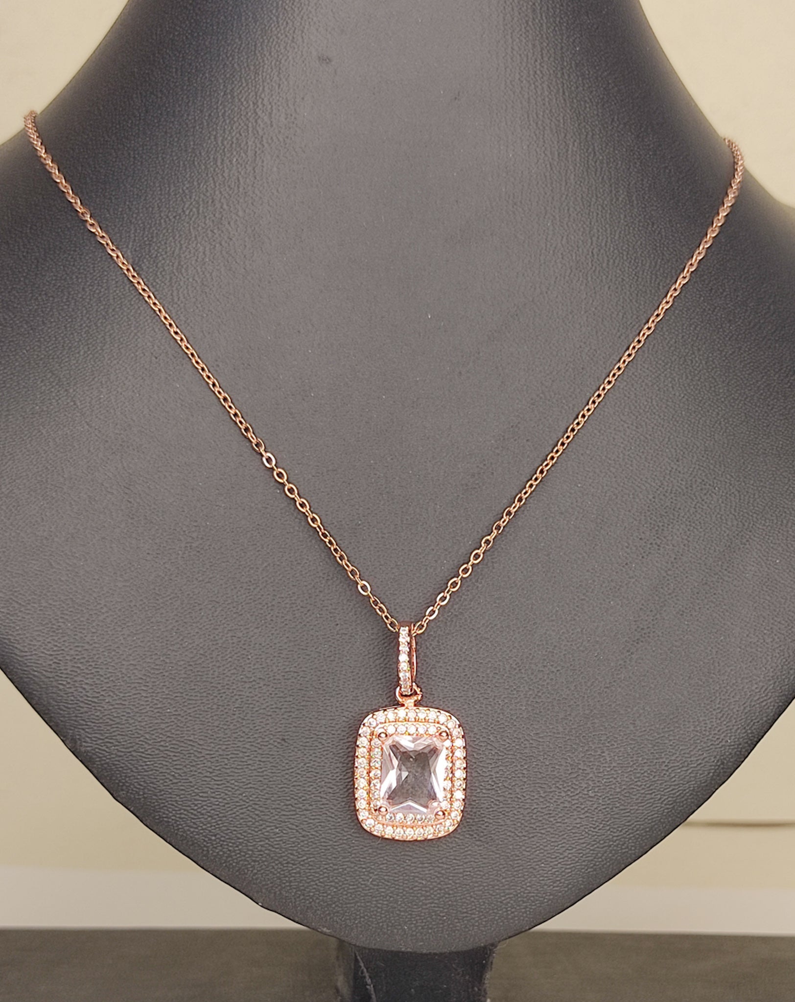Material: Alloy with rose gold plating and Cubic Zirconia