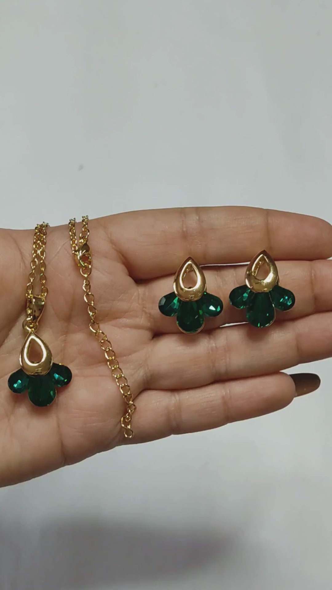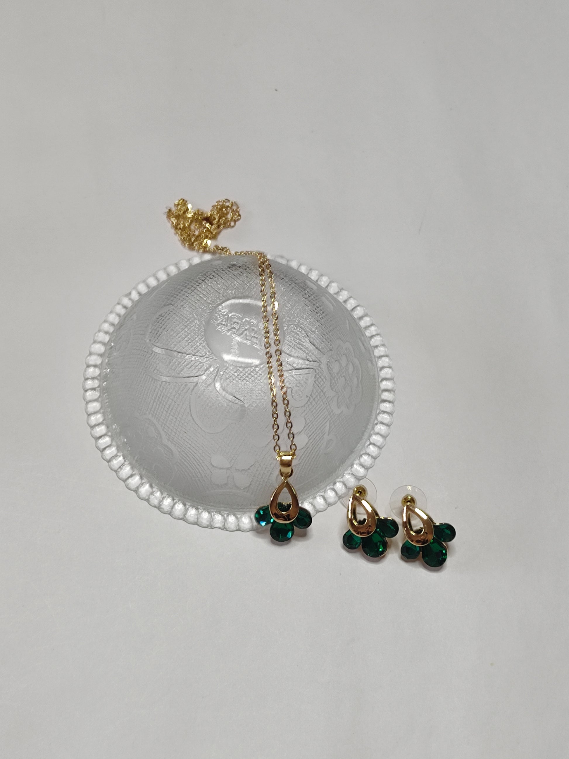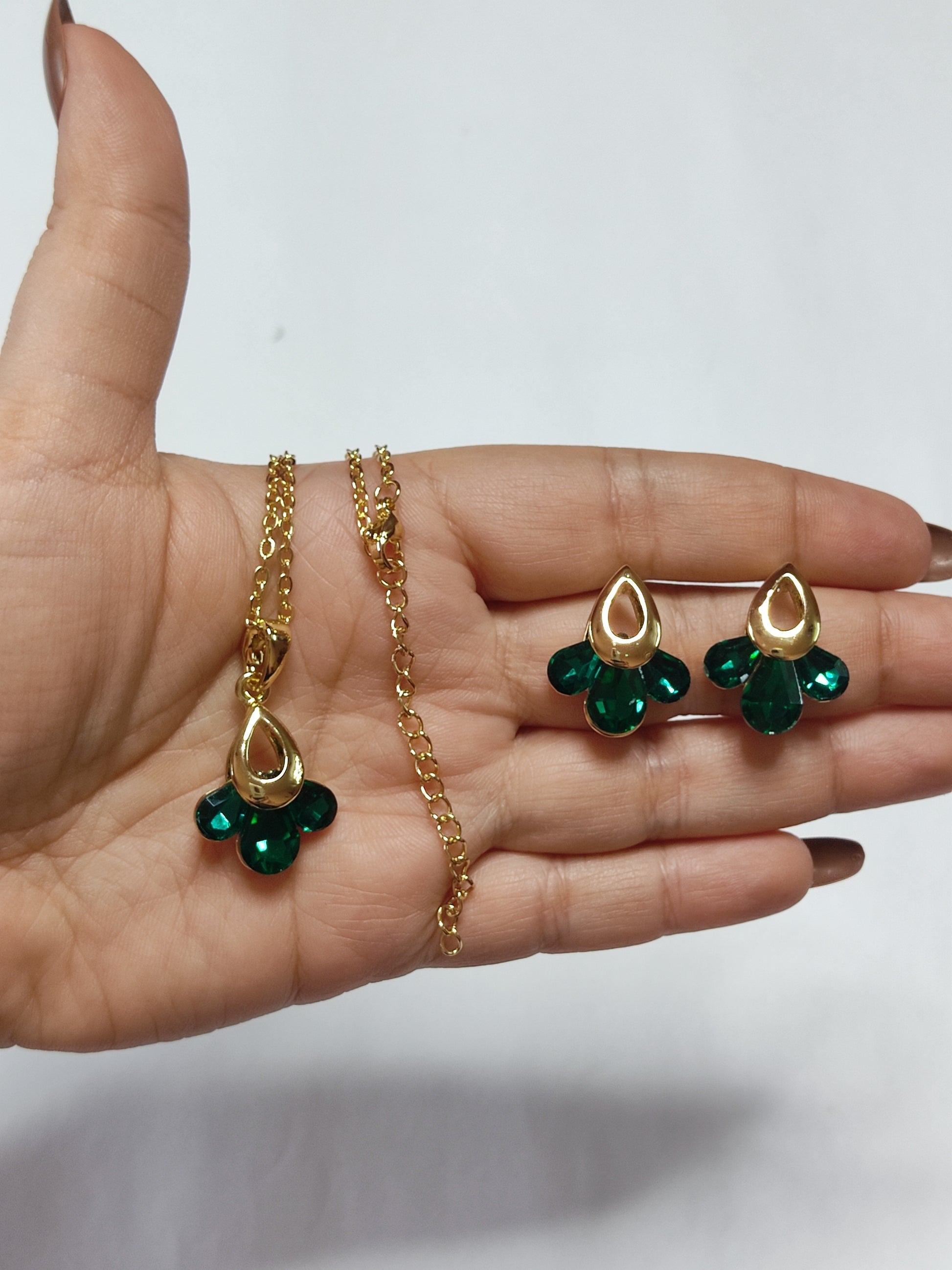 Product Name: Green Petal Gold Pendant Set