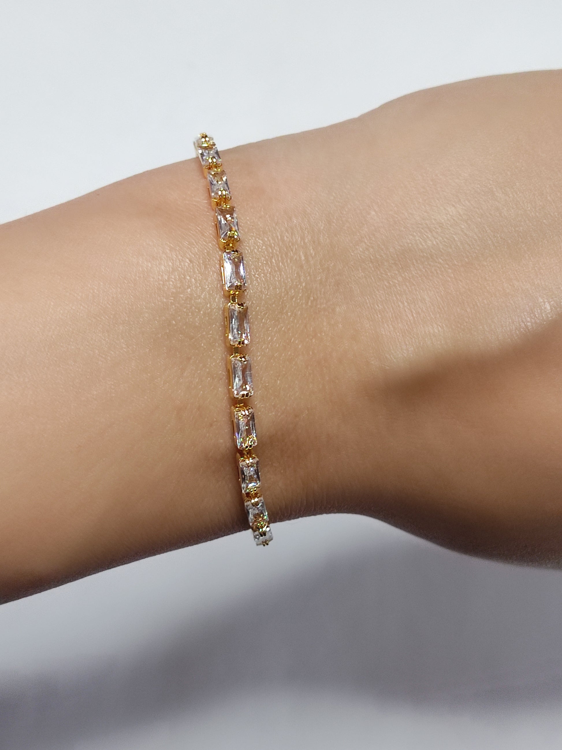 Product Name: Gold Rectangular Tennis Bracelet